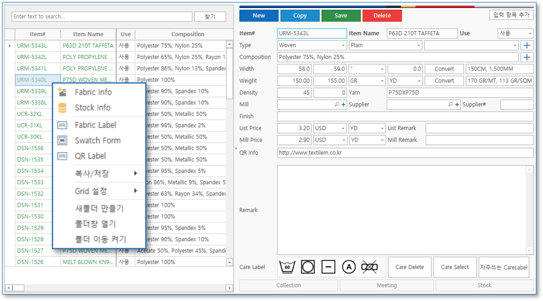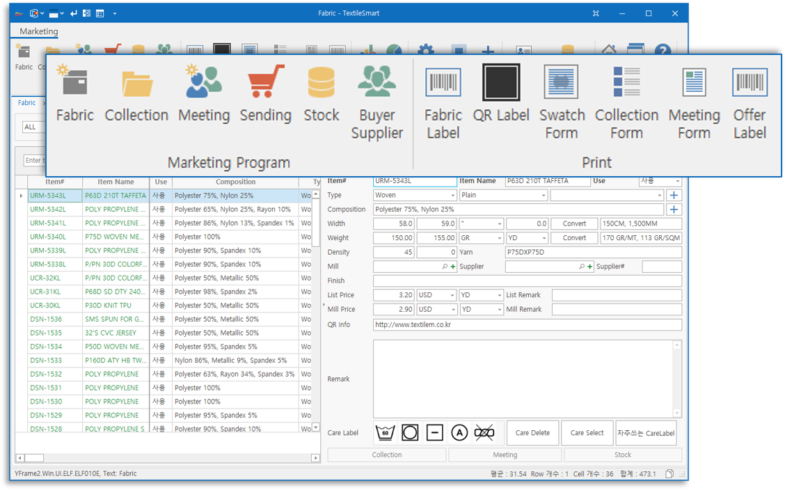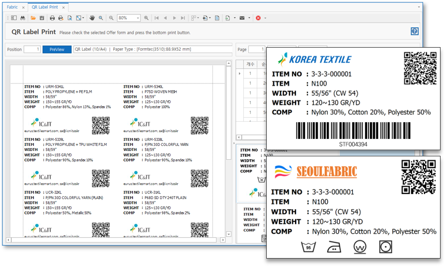 바이어가 라벨의 QR코드를 스캔하면 아이템 정보와 업체 주소(URL)를 모바일로 확인할 수 있습니다.